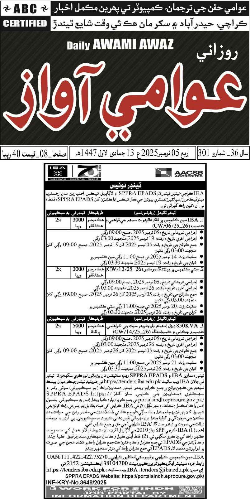 Supply & Installation of Fire Hydrant System at IBA Main Campus (Express Tribune | Awami Awaz | Notification PC | CRC | Bidding Document (Total Download:4) | APP | Jang) |